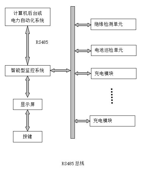 第五代監(jiān)控系統(tǒng)靈活的兼容了電源系統(tǒng)中的各種設(shè)備的檢測與控制,系統(tǒng)主要包括主監(jiān)控、電池巡檢單元、絕緣檢測單元,充電模塊最多可控制8臺;電池巡檢最多可巡檢18節(jié)電池的電池組;絕緣檢測單元30輸出回路。系統(tǒng)組織結(jié)構(gòu)如下圖所示: